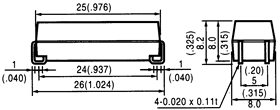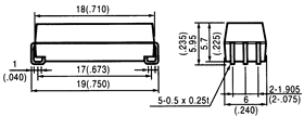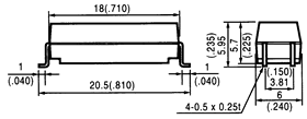 額定負載 | 8 X 105 (20VDC, 0.5A) | 2 X 106 (12VDC, 0.25A) | 1 X 106 (100VDC, 0.5A) |