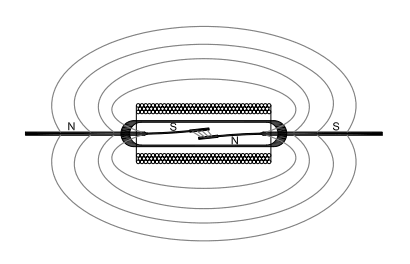 兩干簧片呈相反極性,在兩簧片間產(chǎn)生足夠的吸力而互相接觸